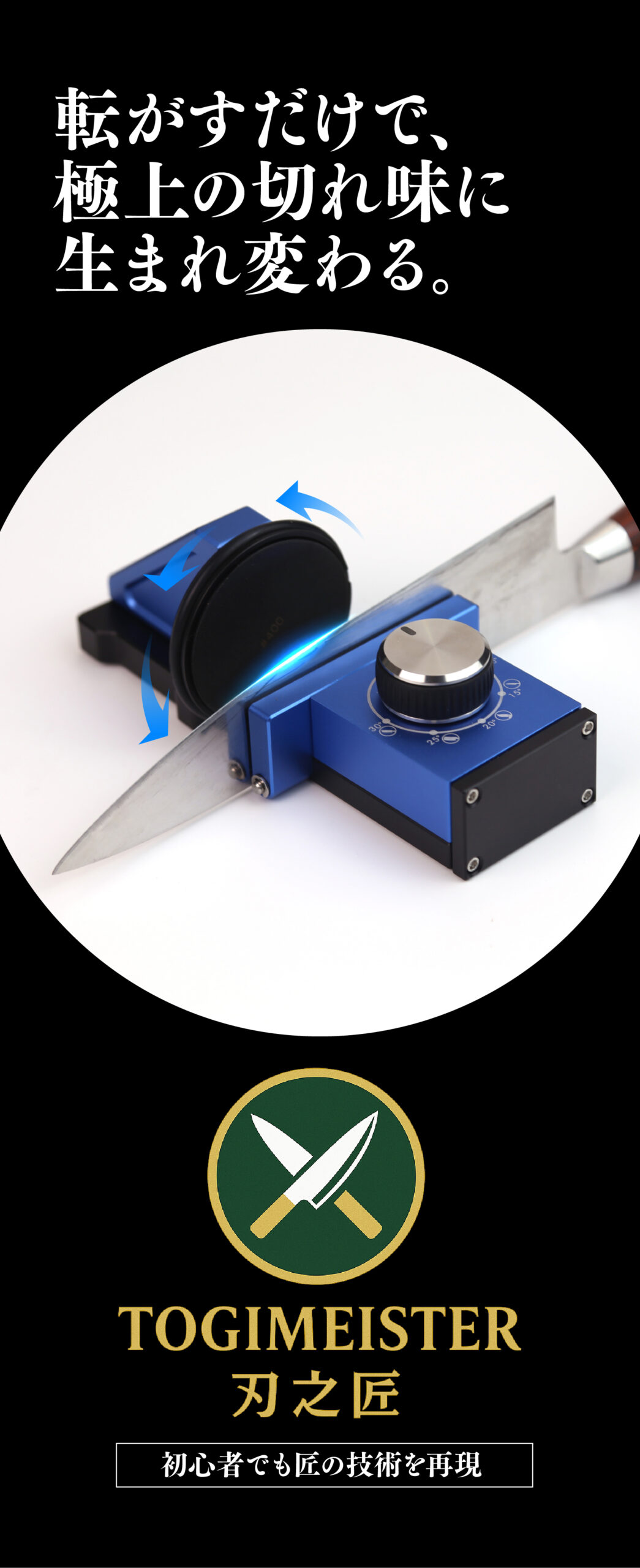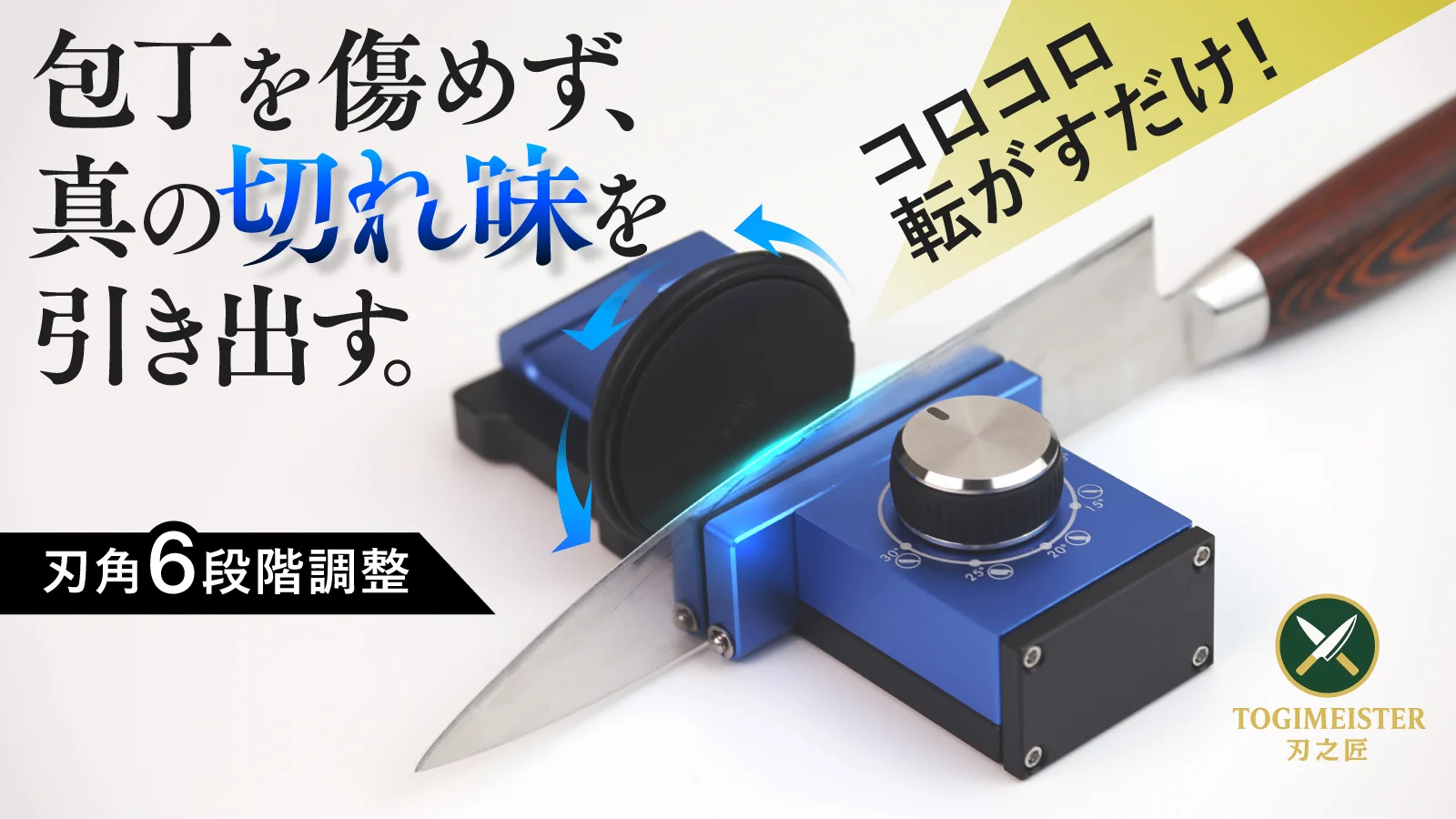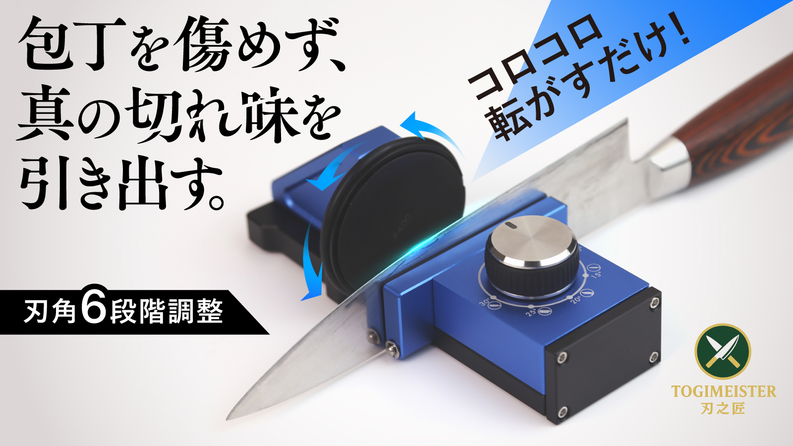 TOGIMEISTER 刃之匠はプロ顔負けの研ぎ直しができる、ローリング式の包丁研ぎ器です。