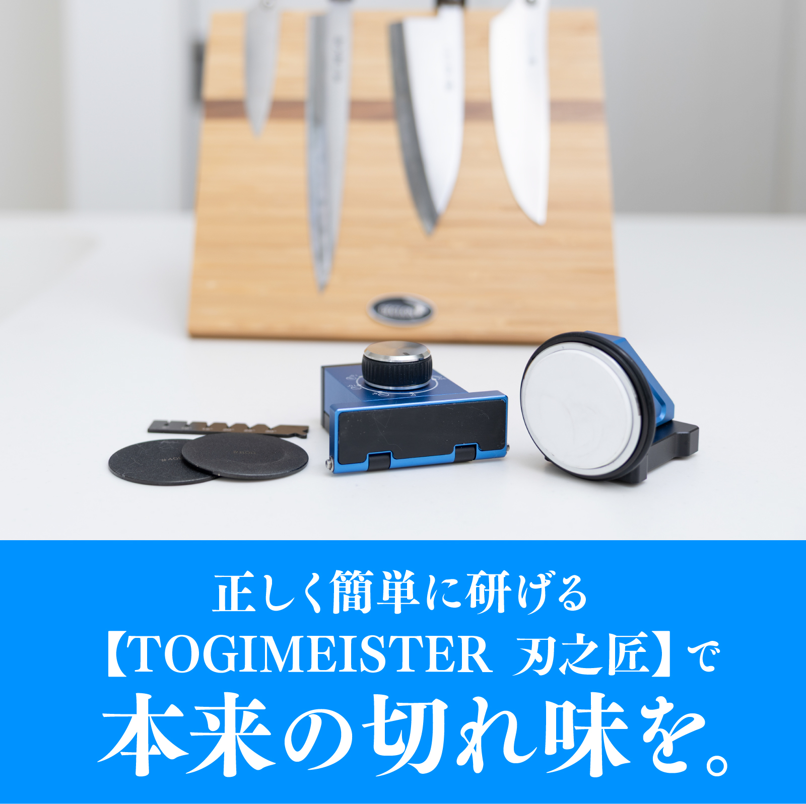 TOGIMEISTER 刃之匠は砥石を転がすだけで包丁の切れ味が蘇る、ローリング式の包丁研ぎ器です。