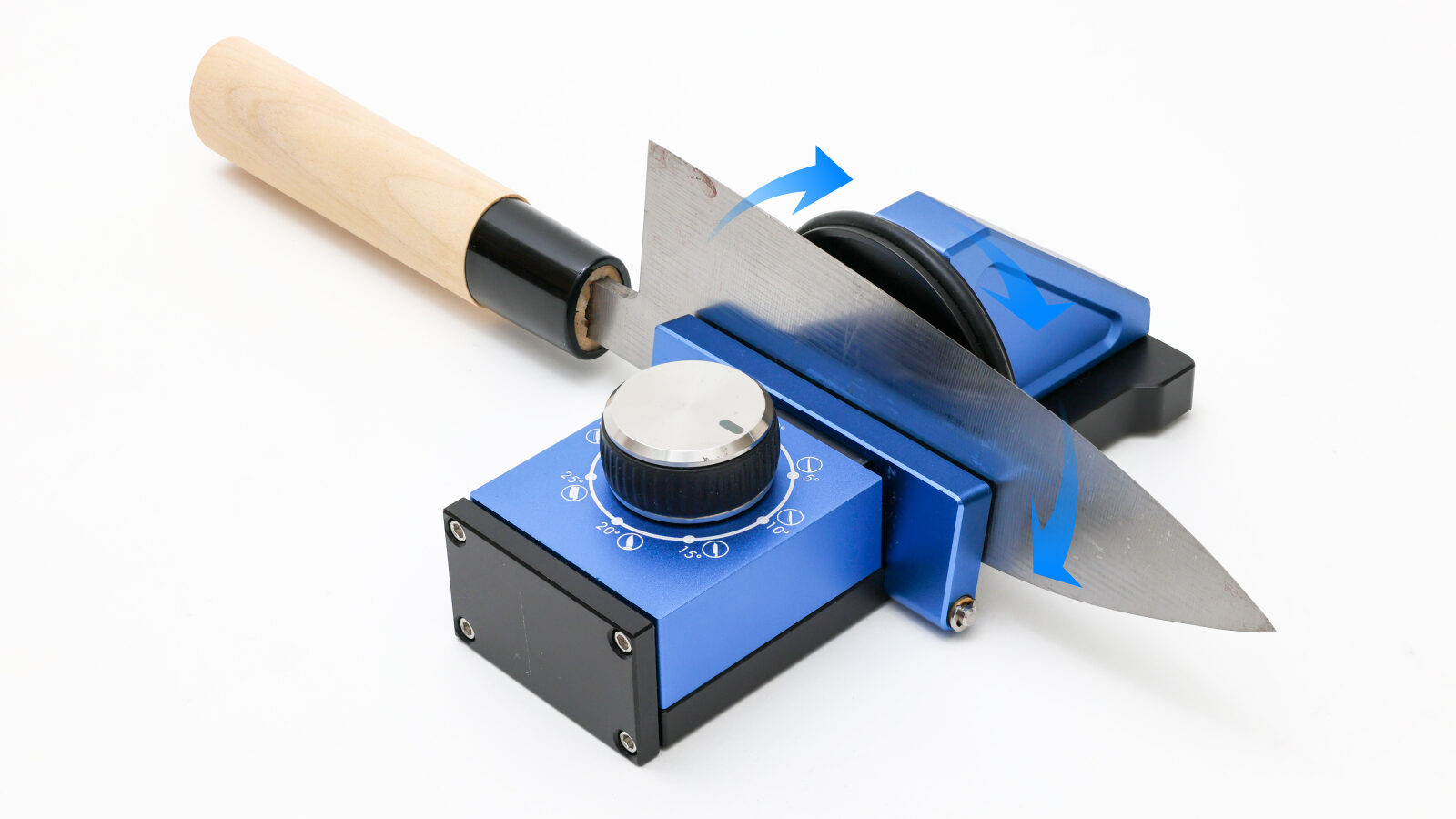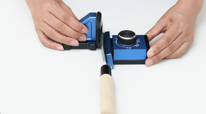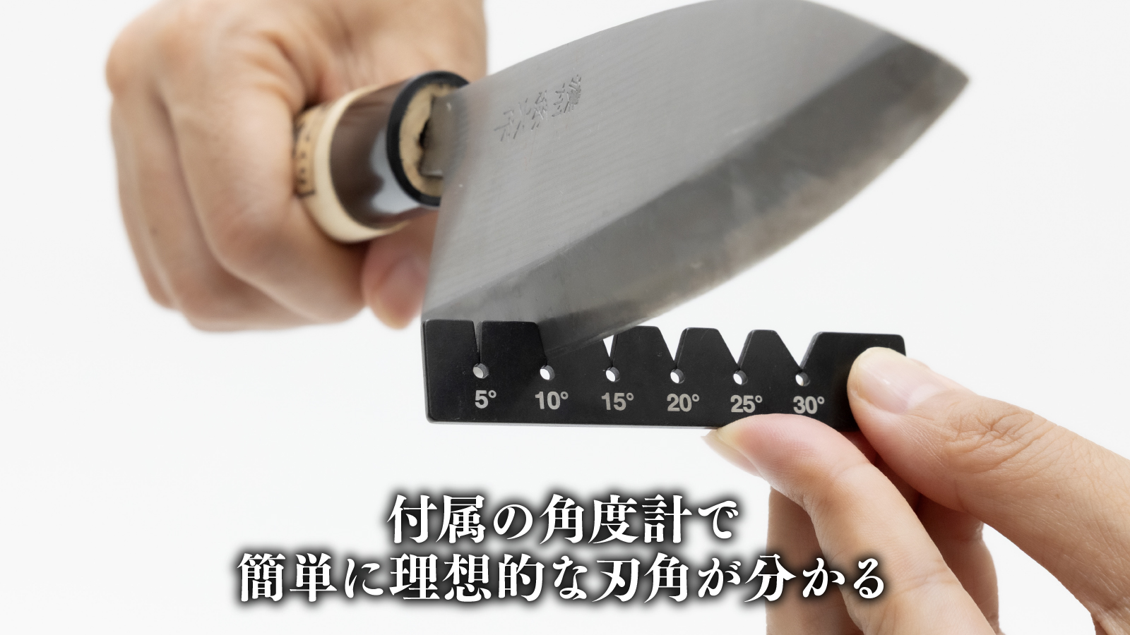 お使いの刃物の刃角が分からない場合でも、付属の角度計を使えば、刃物の素人でも簡単に理想的な刃角が分かります。