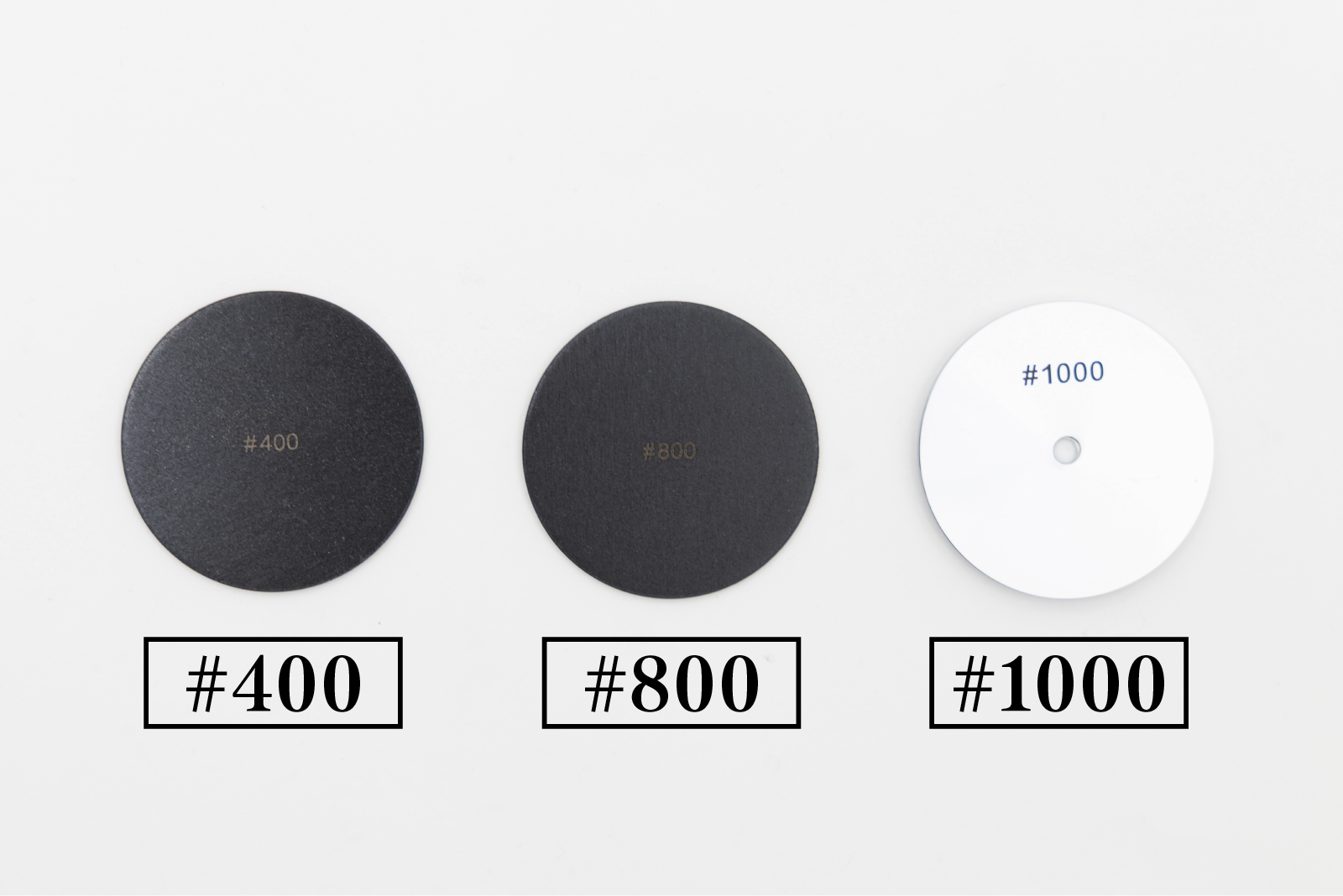 400番手と800番手はダイヤモンド砥石、1000番手はセラミック砥石を使用。